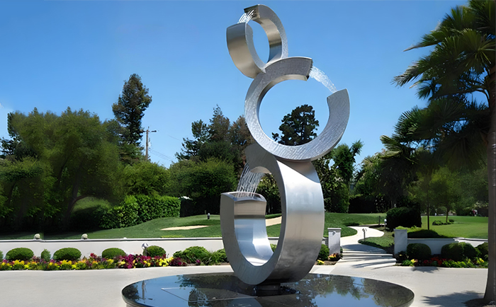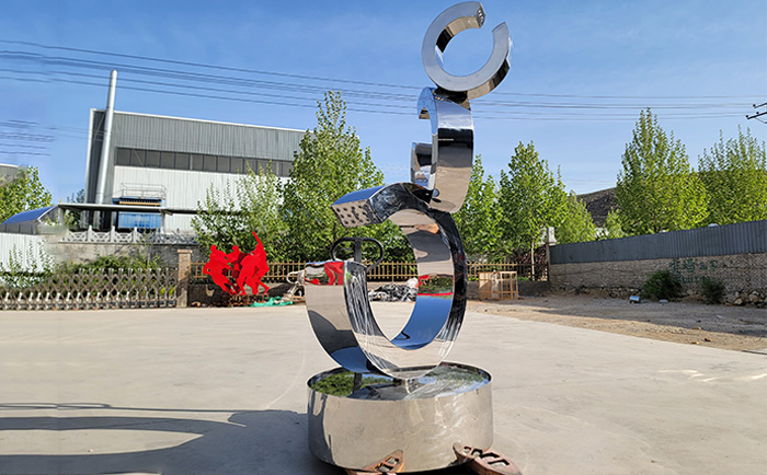 不銹鋼材質賦予了雕塑現代感與時尚氣息,其光滑的表面能完美地反射周圍的環(huán)境與光影,當噴泉開啟,水流與光影相互交織,在不同的時段、不同的天氣條件下,呈現出千變萬化的視覺效果。白天,陽光灑在水面與雕塑上,閃耀著金色的光芒;夜晚,配合精心設計的燈光,噴泉雕塑又成為夜空中最璀璨的存在,為城市的夜景增添了一份浪漫與神秘。