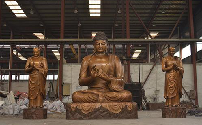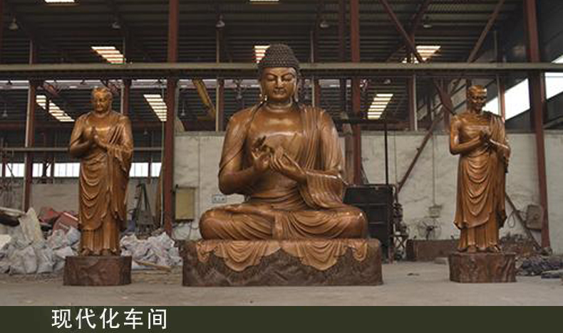 我廠專業(yè)致力于銅佛像雕塑設(shè)計、制作、安裝,配以嫻熟精致的唐彩工藝、貼金工藝等多種表面裝飾工藝技術(shù),輔以佛法教理,誠心雕塑,用心制作,所塑諸佛、菩薩圣像皆如法如儀,相好莊嚴,讓瞻仰者生歡喜心和恭敬心。
